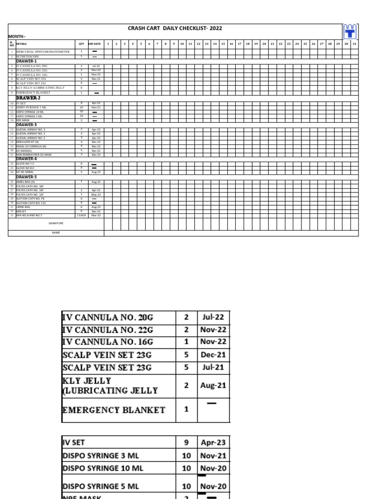 5.CRASH CART Check List PDF Medical Treatments Emergency Medical